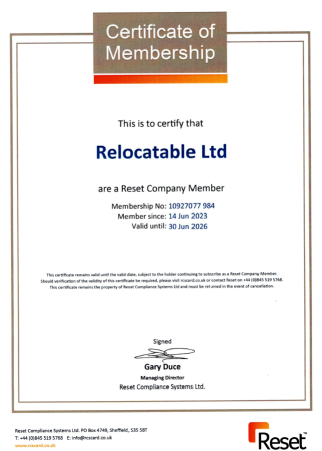 All site crew are supplied with full PPE equipment according to what is required on the site in question, all staff members clearly display the Relocatable logo to ensure security on site.